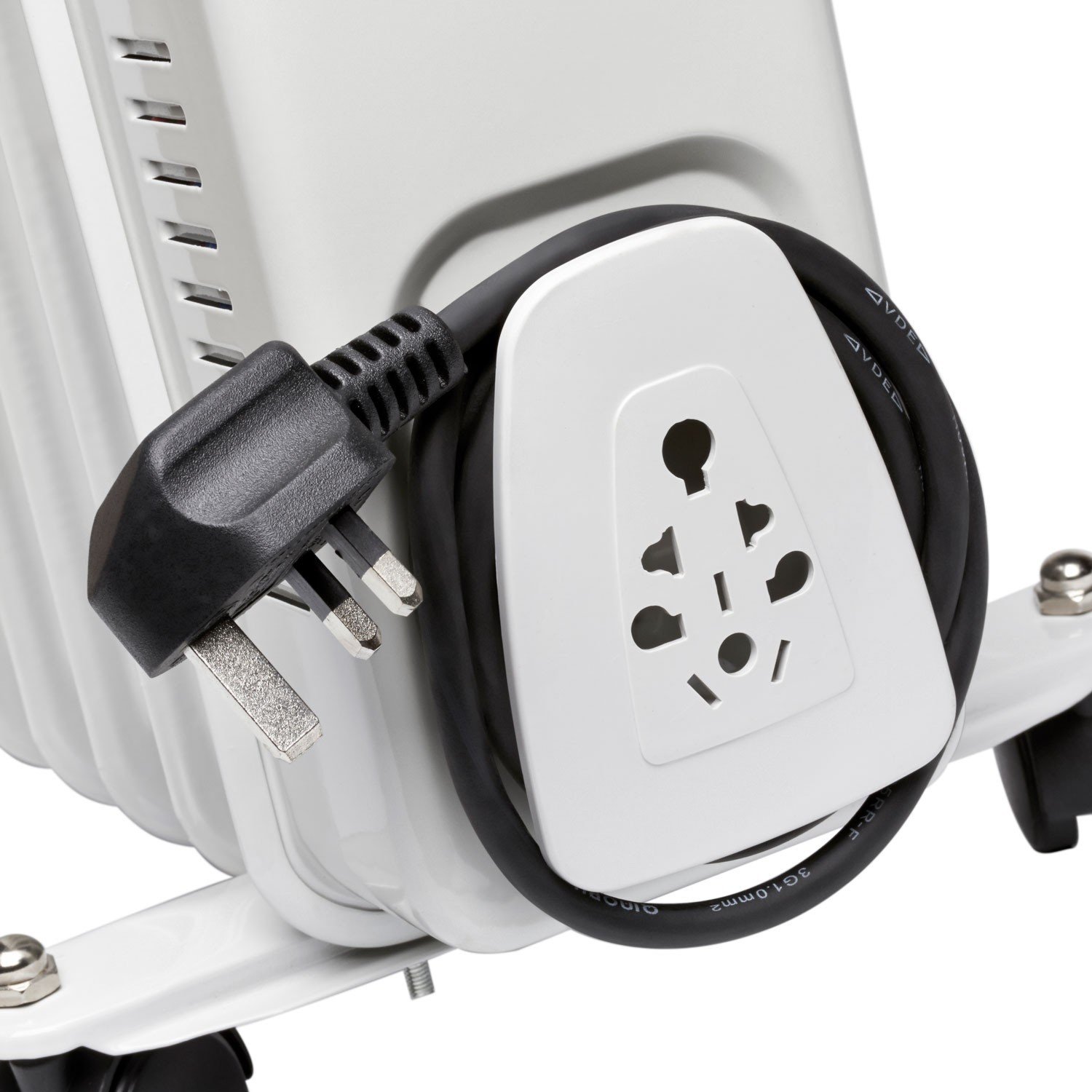 The Eurosonic 11 Fin Oil Filled Radiator is the perfect solution for supplemental home or office heating. This practical heater offers a smart, modern aesthetic that complements any décor, allowing you to comfortably warm your space and reduce reliance on central heating. Its adjustable thermostat features three settings for precise temperature control. Enjoy the flexibility of freestanding use or convenient mobility with the included castors, adapting to your room's size and needs. Integrated overheat protection and a tip-over cut-out system provide peace of mind.
