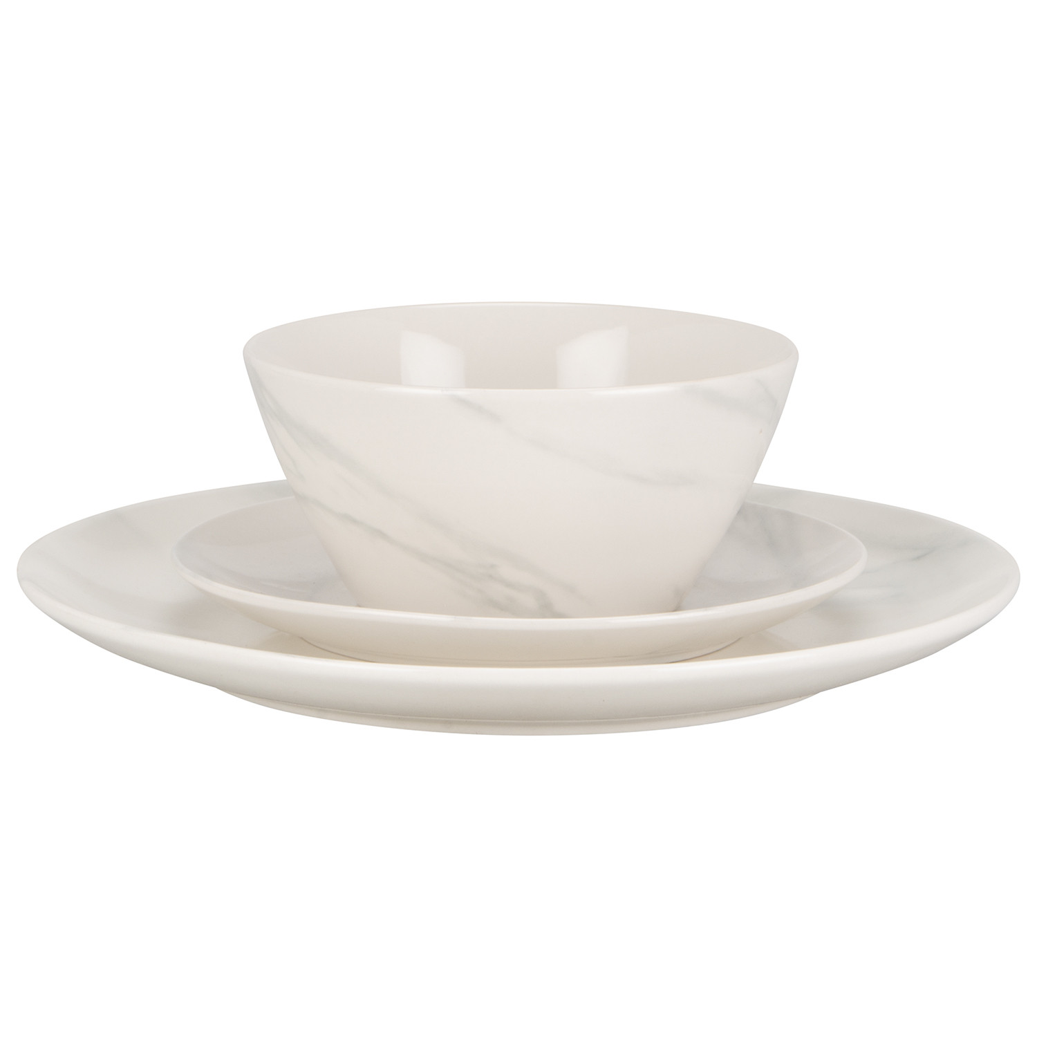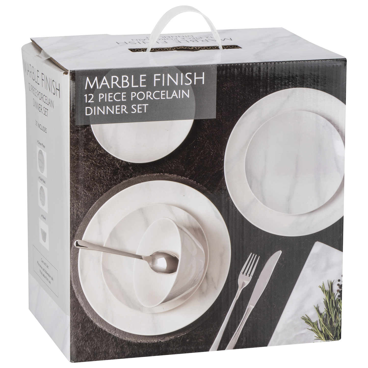 Elevate your dining experience with the 12-Piece Marble Dinner Set. Its stylish marble-inspired finish adds a touch of elegance to any table. This versatile set includes four dinner plates, four side plates, and four matching bowls, perfect for everyday use. Impress friends, family, and guests with this practical and sophisticated addition to your tableware.
