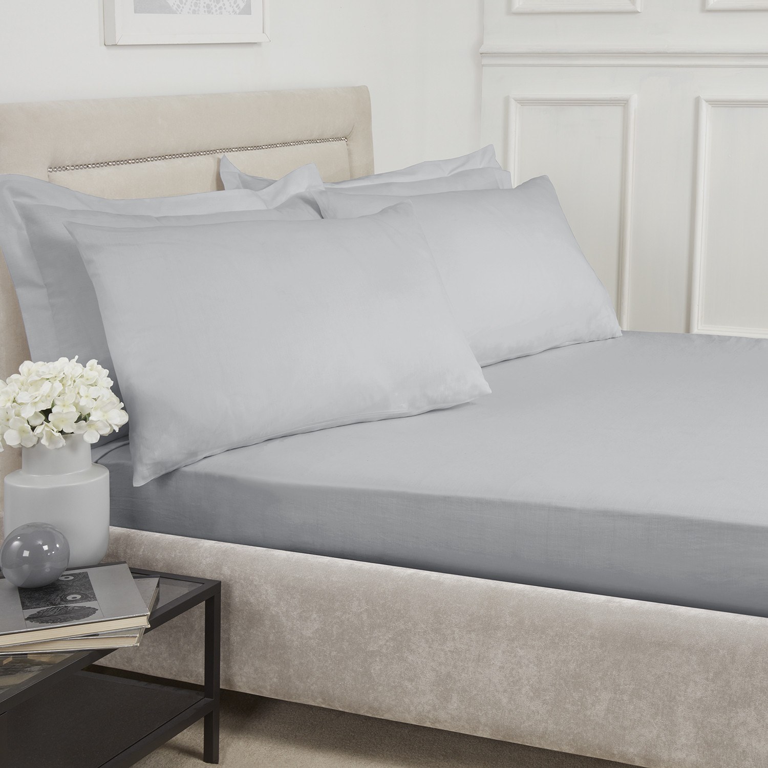 180 Thread Count Cotton Deep Fitted Sheet - Silver / Double