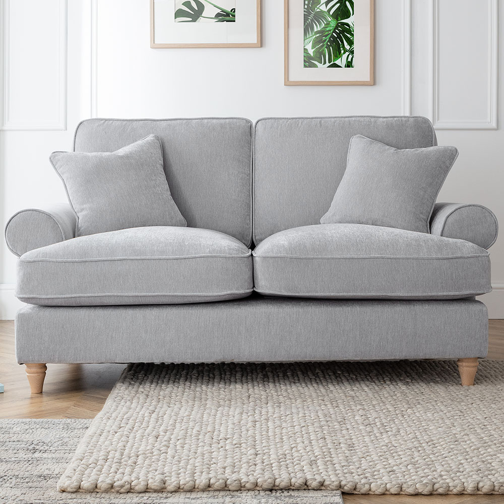 Indulge in the timeless elegance of the Victoria two-seater sofa. This handcrafted piece effortlessly blends classic design with contemporary appeal, creating a luxurious haven in any room. Sink into the opulence of its scroll arms and extra-deep seat cushions, upholstered in a soft-touch fabric that',s both luxurious and easy to professionally clean. The deep pocket sprung seat cushions provide exceptional comfort and support, while the soft-fill polyester fibre back cushions will require regular plumping to maintain their shape. Finished with stylish pale wood legs and complemented by included scatter cushions, the Victoria is a statement piece that promises unparalleled relaxation. Enjoy the convenience of in-room delivery with packageing removal.