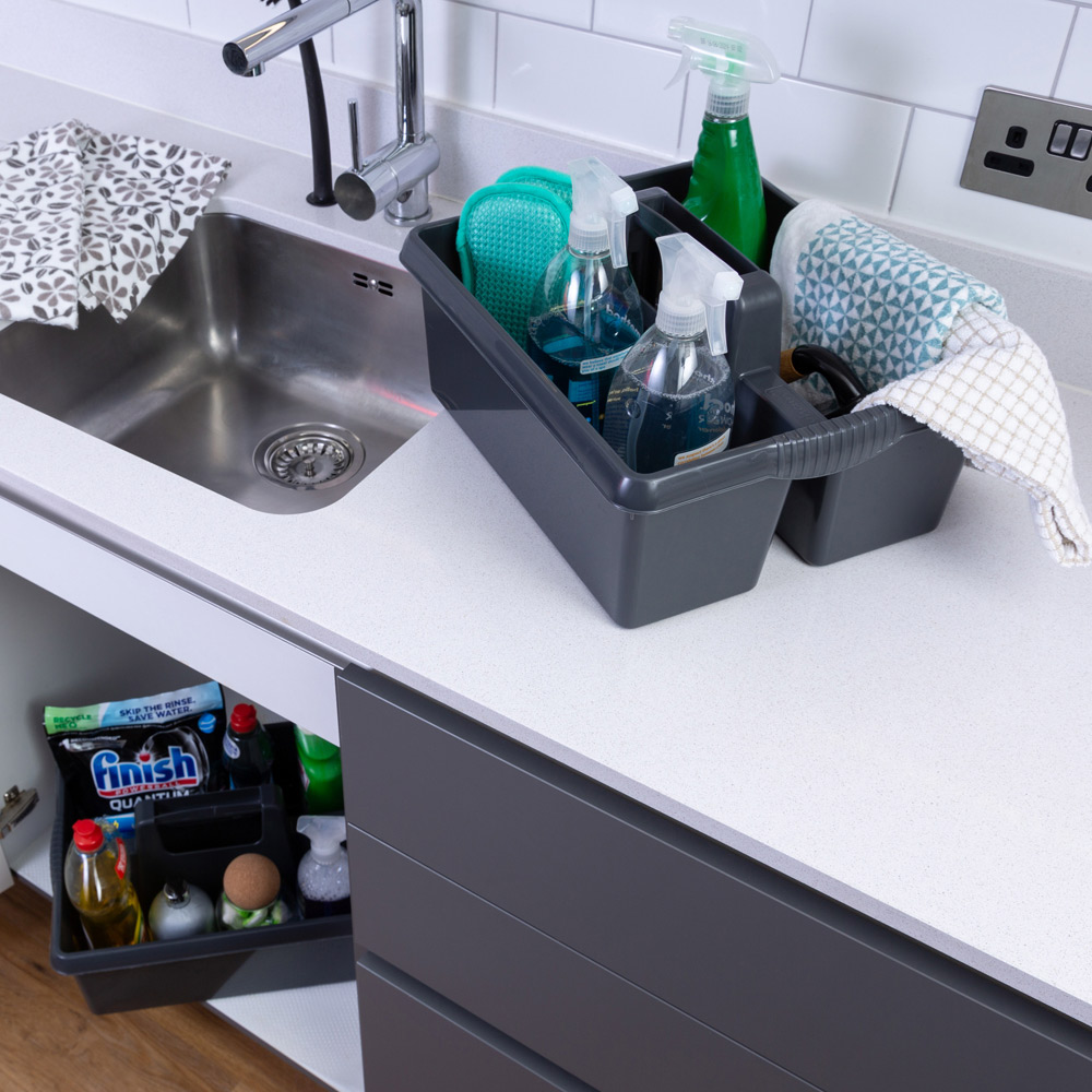 2 x Wham Casa Kitchen Plastic Large 2 Section Tidy /Caddy Organiser 2 Pack