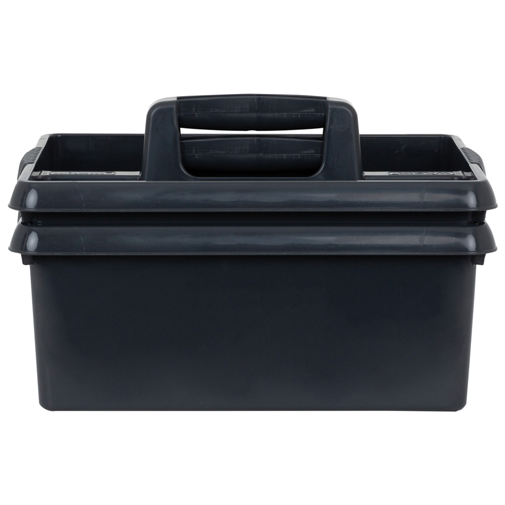 Declutter your cleaning cupboard with the Wham Midnight Casa Kitchen Plastic Large 2-Section Tidy/Caddy Organiser. This durable plastic caddy boasts a quality finish and is perfect for both home and professional environments. Featuring two compartments and a convenient carry handle, this set includes two organisers for home and professional use. Dimensions: 20 x 31.5 x 38cm.