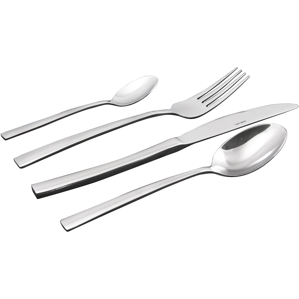 The Sabichi Mayfair Cutlery Set, a 24-piece collection, brings contemporary elegance to your dining experience. Crafted from durable stainless steel, this set includes everything for a six-place setting: six knives, six forks, six tablespoons, and six teaspoons. The uniquely squared-off handles offer both a stylish aesthetic and a comfortable, secure grip. Measuring 22cm (knives), 19.3cm (forks), 17.2cm (tablespoons), and 13.4cm (teaspoons), this set is presented in attractive packageing, making it an ideal housewarming gift or a perfect addition to your own tableware.