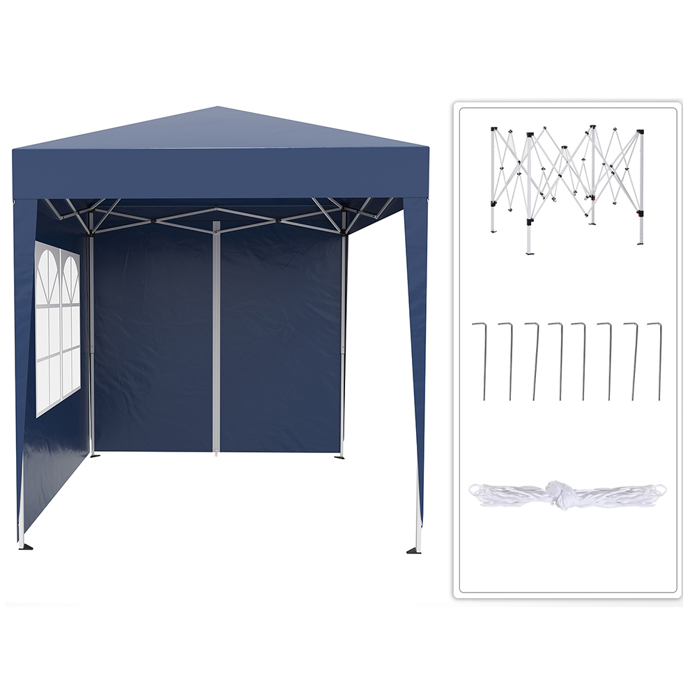 Create the perfect outdoor haven with this 2m x 2m blue marquee gazebo. Ideal for a range of occasions – from family gatherings and weddings to sporting events and camping trips – this versatile shelter provides reliable protection from the elements. Its robust powder-coated steel frame ensures lasting strength, even throughout winter, while the durable, water-resistant Oxford canopy with silver coating offers shade and reduces internal heat. For ultimate convenience, this gazebo features a simple pop-up design, four removable side walls, and a handy carry case. Complete with ropes and stakes for added stability, this gazebo is a practical and stylish addition to any outdoor space.