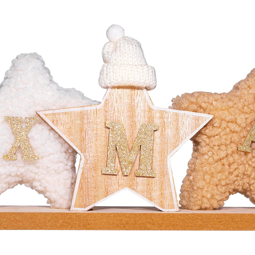 Introduce a touch of festive charm to your home with the Marco Paul Bouclé Stars Decoration. This endearing wooden sign, adorned with a soft plush fabric, offers a warm and welcoming accent to your seasonal decorations. Its neutral palette ensures it integrates seamlessly with any interior aesthetic. A delightful free-standing piece, perfect for adding a sprinkle of Christmas joy.