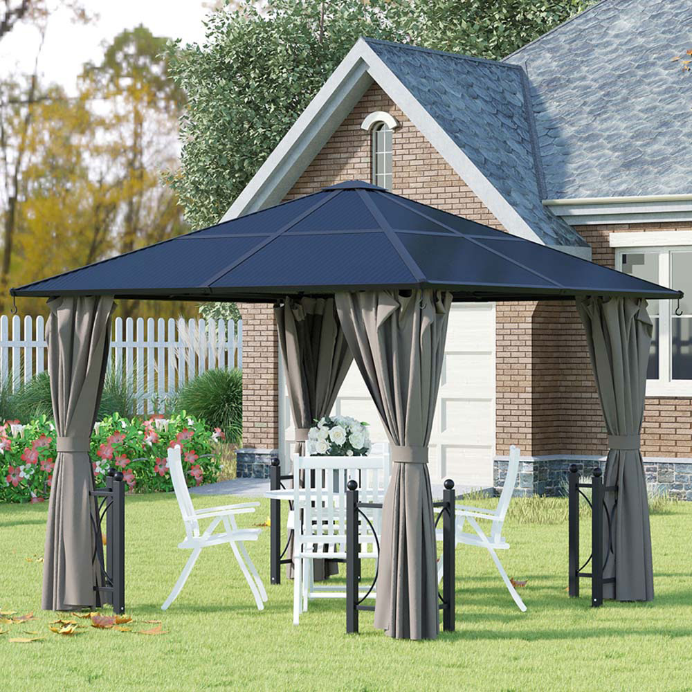 Transform your outdoor area into a haven of relaxation and style with this Outsunny 3 x 3m Grey Hardtop Gazebo. Elevate your garden, patio, or outdoor space with a touch of elegance sure to impress. Generously sized to comfortably accommodate numerous guests, this gazebo is ideal for family gatherings and celebrations.