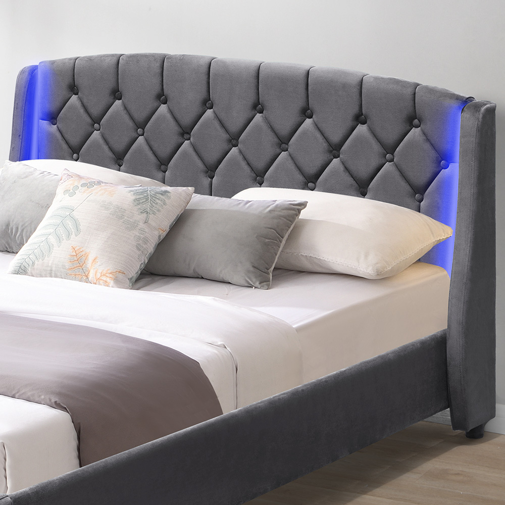 Comfy Living Double Grey Fabric Bed Frame with LED Headboard