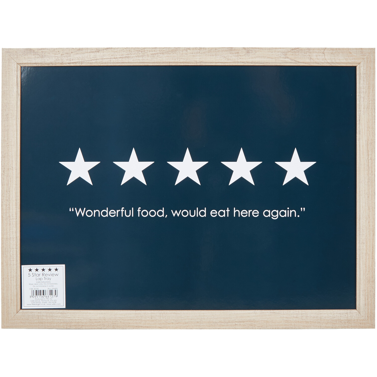 Enjoy your favourite meals in total comfort with this stylish 5-Star Lap Tray. This trendy tray features a unique review system, sure to impress your family and friends. Designed for maximum convenience, it includes a cushioned base. Multifunctional and practical, it’s perfect for enjoying a lousy dinner in front of the telly, breakfast in bed, or any other activity where you need a stable surface.