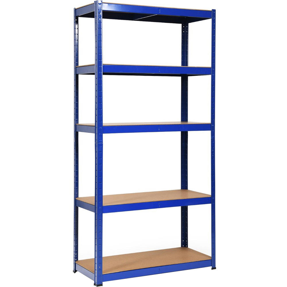 The Costway 5 Shelf Shelving Unit in Navy is the perfect storage solution for your garage, utility room, or office. This unit features a galvanised steel frame and durable board shelves that are easily adjustable to different heights. Each shelf is designed to provide stability and prevent collapsing, offering peace of mind. With its boltless design, assembly is quick and simple, requiring no complex tools. The adjustable shelves allow you to customise the spacing to accommodate various item sizes, while the space-saving design ensures it occupies minimal floor space. This versatile unit can also be transformed into a workbench, making it a practical addition to any storage or workspace.