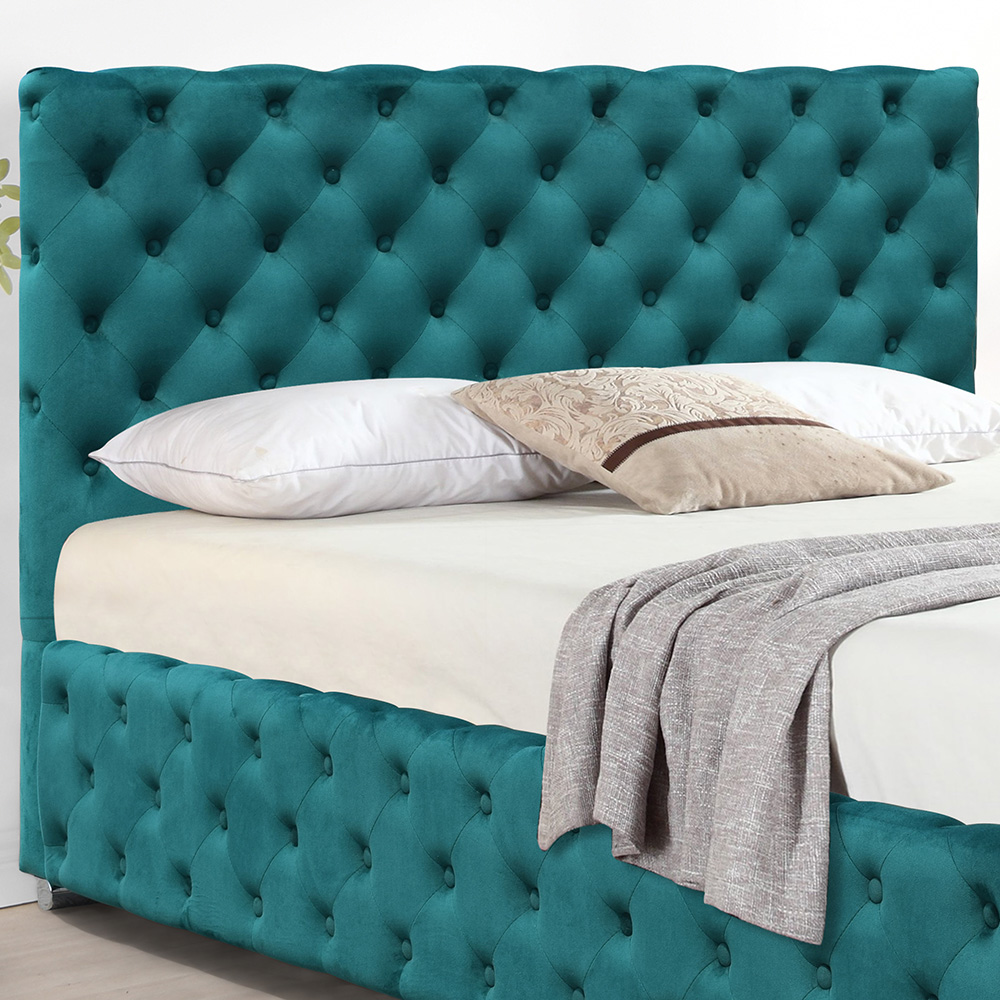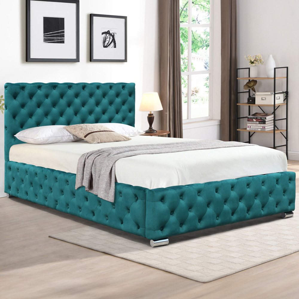 Comfy Living King Size Green Tufted Fabric Bed Frame