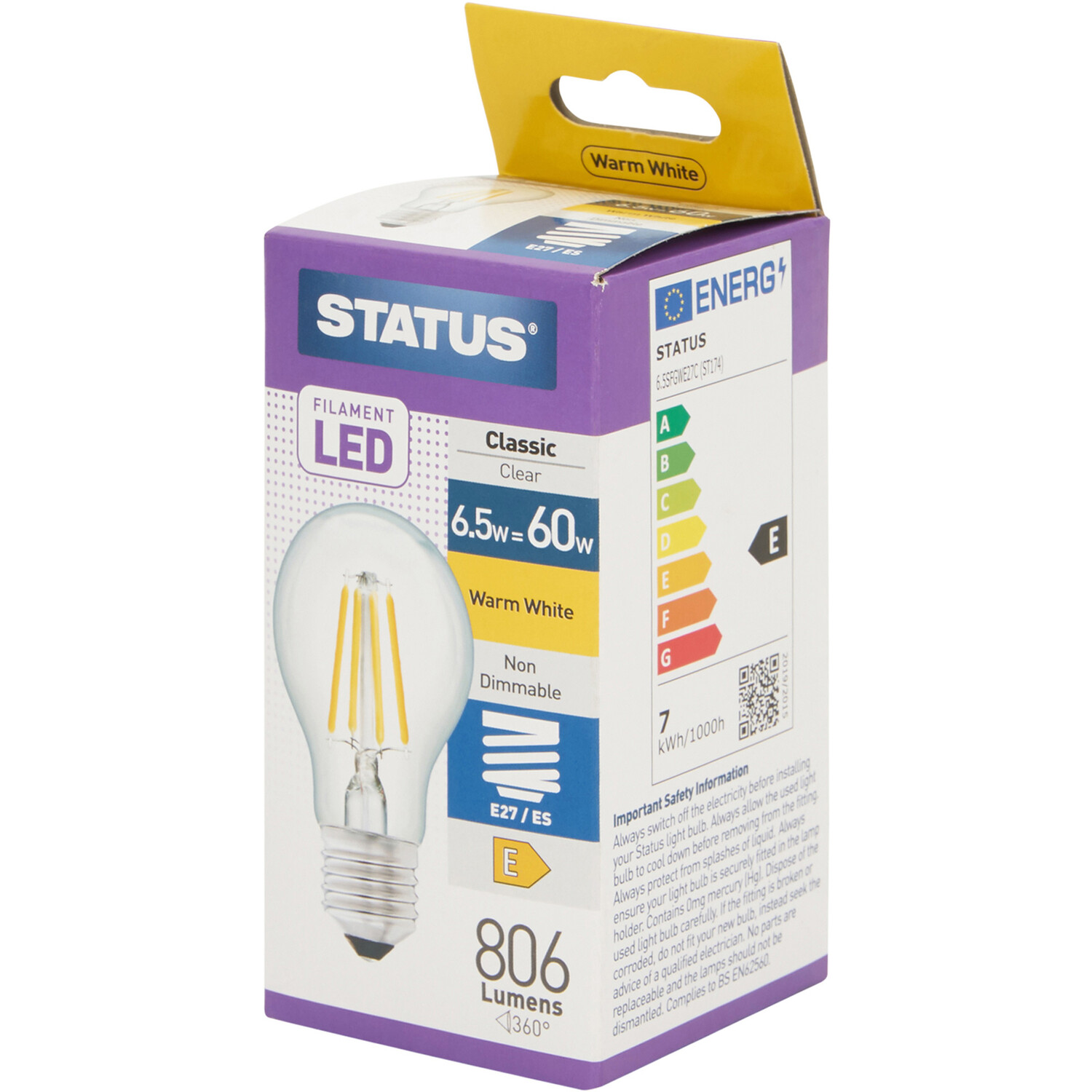 Transform your home with the warm glow of this 6.5W filament GLS light bulb. Its classic clear design and warm white filaments create a cosy ambiance. Engineered for longevity, this bulb delivers approximately 15,000 hours of use and withstands 7,500 switch cycles. Brighten any room with its 806 lumens output – the perfect replacement for outdated bulbs. The E27/ES cap ensures compatibility with most fixtures.