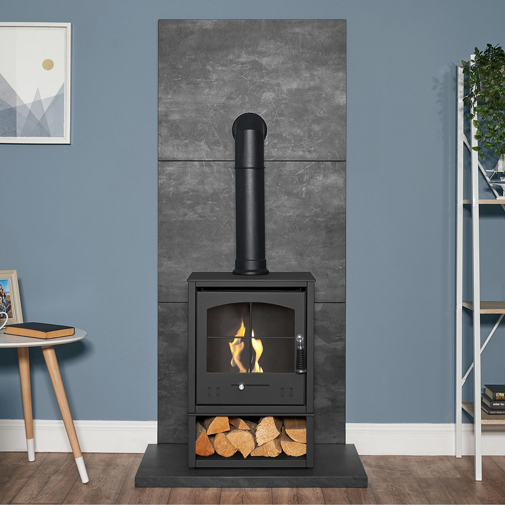 Acantha Slate Venetian Plaster Effect Tile and Hearth Set with OKO S2 Stove Log Store
