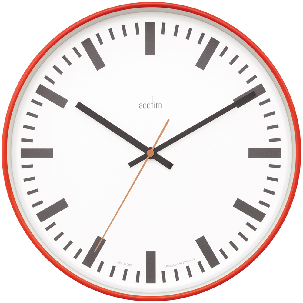 The Acctim Victor Jam Round Wall Clock, a vibrant jam-coloured statement piece, adds a touch of modern style to any room. Its 30cm diameter features a clear glass lens revealing a crisp white face with black numbers and white hands. Precise quartz movement ensures accurate timekeeping.