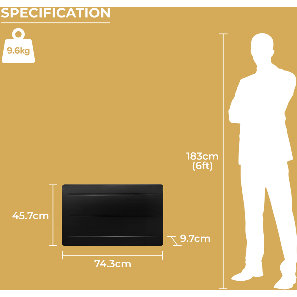 The Adam Onyx electric radiator offers a stylish and efficient heating solution, ideal for those seeking an alternative to traditional systems. This LOT-20-compliant radiator boasts a sleek design and can be easily wall-mounted, saving valuable space and eliminating the need for complex pipework. The 1500W radiator features a user-friendly LCD with a 7-day programmable timer, enabling complete control over your heating schedule. For enhanced safety, the Adam Onyx radiator includes a built-in child lock feature, providing added peace of mind. Designed with no moving parts, this space-saving radiator offers a modern and secure heating option.