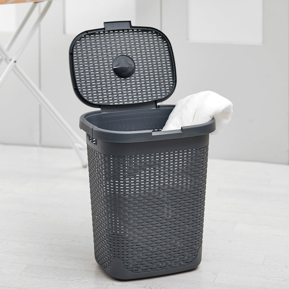 Addis Faux Rattan Charcoal Laundry Hamper 50L