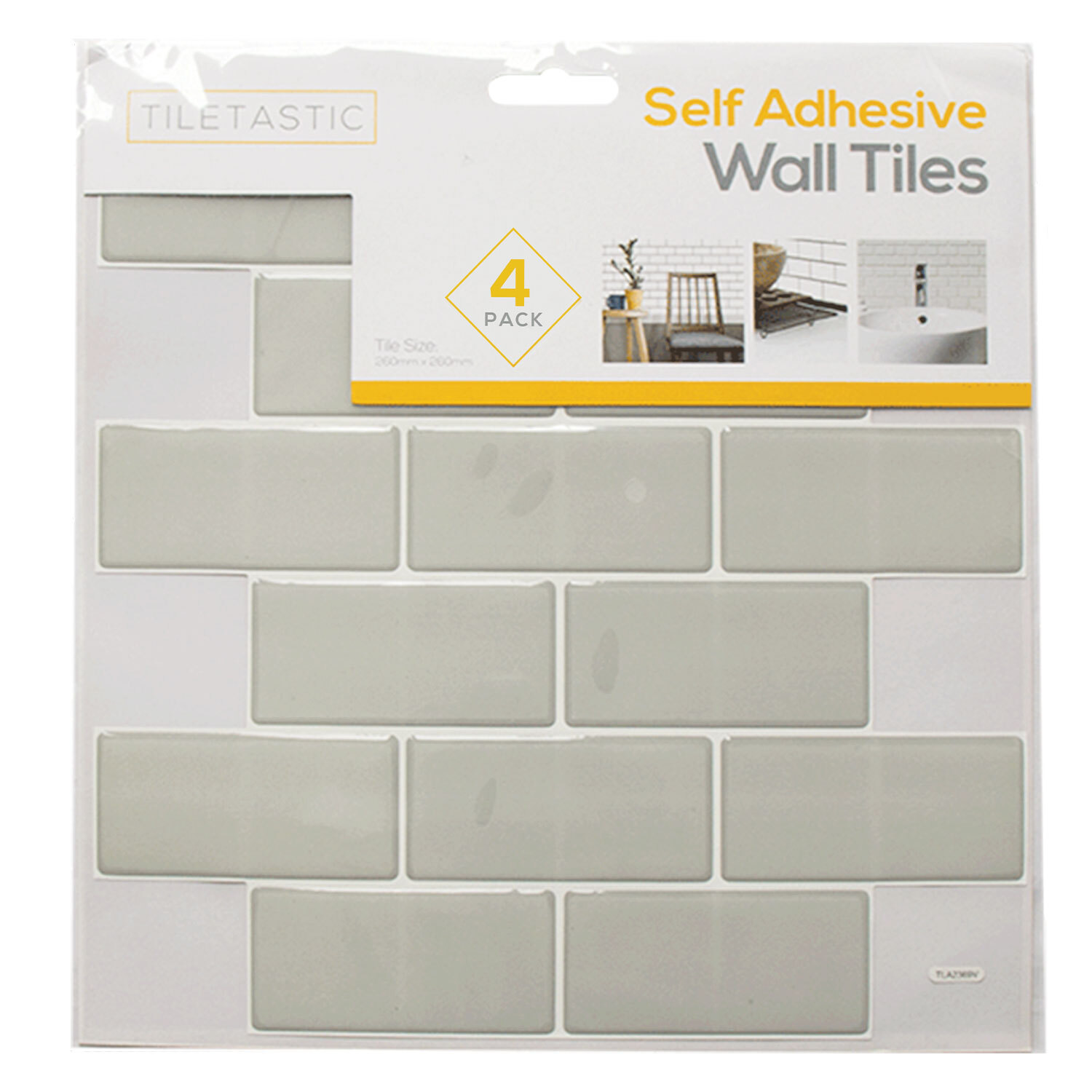 Transform your kitchen or bathroom with these adhesive wall tiles. Four tiles provide four square feet of coverage, offering a quick and easy installation, and are simple to clean and replace. Available in two colours.
