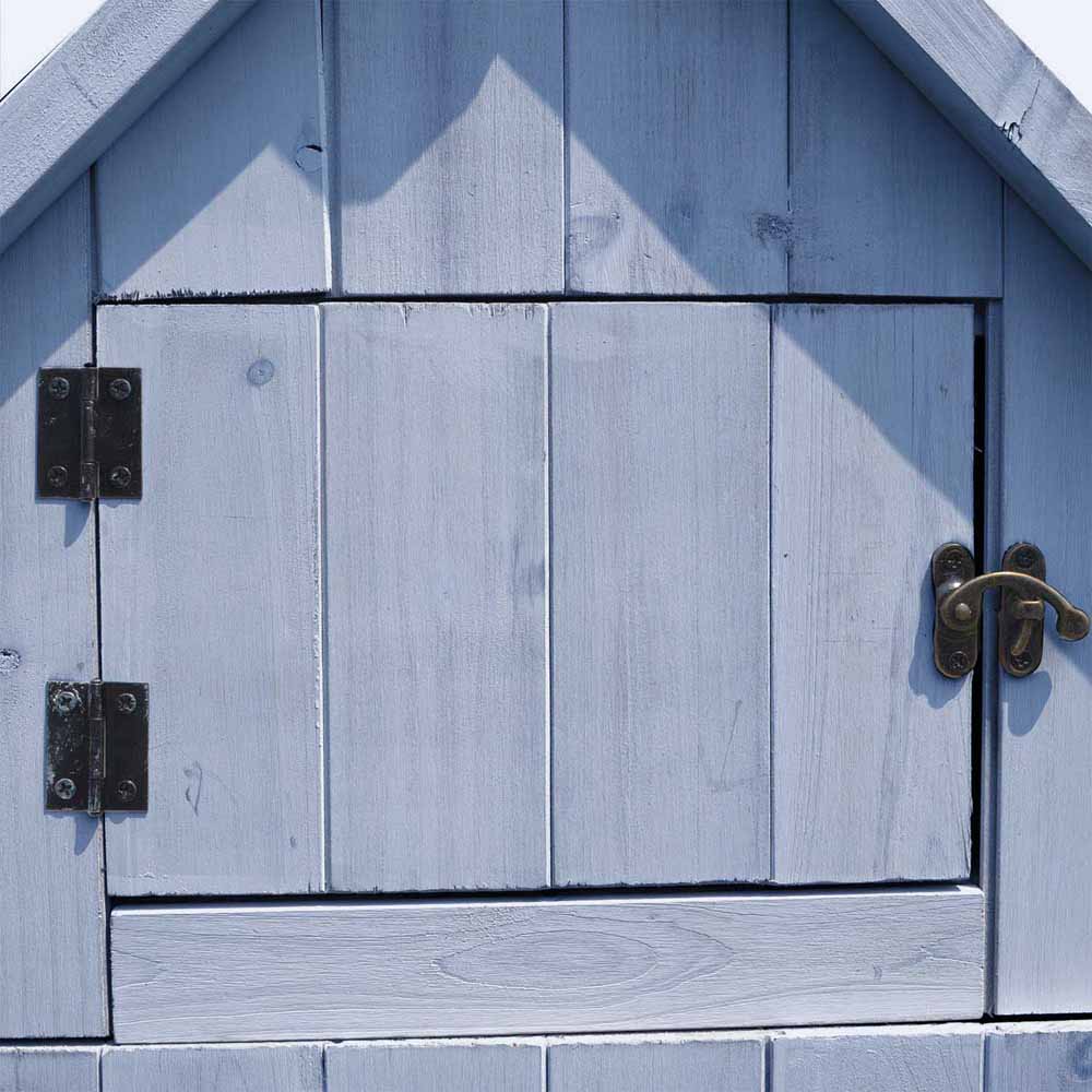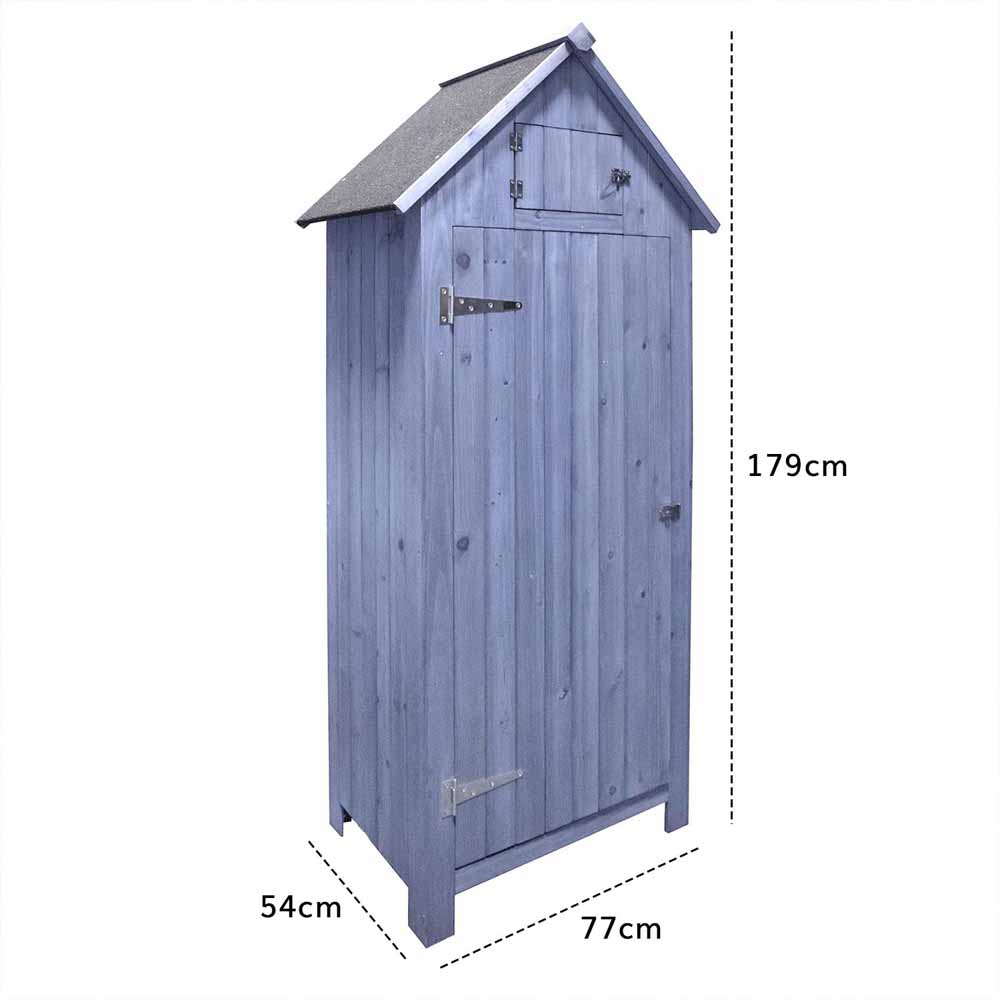 Transform your gardening experience with the Bideford wooden tool shed, a chic solution for organising your tools and essentials. This elegantly designed blue shed features three versatile storage compartments, perfect for accommodating both small and larger items. Inside, you'll find three half-sized shelves to keep your smaller tools secure and neatly arranged, alongside an additional upper shelf ingeniously integrated into the roof for your horticultural essentials like weed killer, trowels, and gloves. The remaining space is ideal for long-handled tools such as spades, rakes, and forks, ensuring everything has its place. For added security, a padlock can be attached to a robust metal latch to safeguard your items. Crafted from resilient Chinese fir wood sourced from managed forests, this shed is built to withstand the elements, featuring heavy-grade mineral roofing felt and a wooden drop latch to protect your garden tools from rain, wind, and snow. Self-assembly is required, and the product is supplied flat-packed. Colour: White. Dimensions: Internal: H125 x W63 x D43cm, Large Door: H123 x W51cm, Small Door: H25 x W35cm.