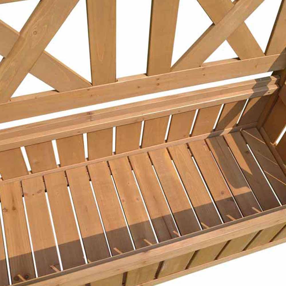 Discover the perfect blend of style and utility with the Seated Storage Bench. This innovative piece transforms the classic garden bench into a multi-functional storage solution, featuring a convenient lift-up lid that provides access to a spacious storage chest beneath the seating. Designed to comfortably accommodate up to two adults, it’s crafted from robust fir wood, treated to resist rot and pests, ensuring durability for years to come. The warm-toned wood not only enhances its natural aesthetic but also adds a touch of elegance to your outdoor space. Whether you need to tuck away wellies, children’s toys, or gardening tools, this outdoor storage bench maximizes functionality without compromising on style. Please note that it arrives flat packed and requires self-assembly. Backed by a one-year warranty against manufacturing faults. Dimensions: H 26 x D 43 x W 106cm. Protect your investment with our range of heavy-duty, waterproof garden furniture covers, designed to ensure longevity and maintain your bench's charm.