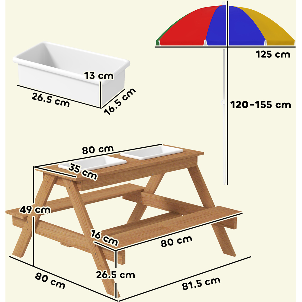 AIYAPLAY Kids Wooden Picnic Table with Bench and Parasol