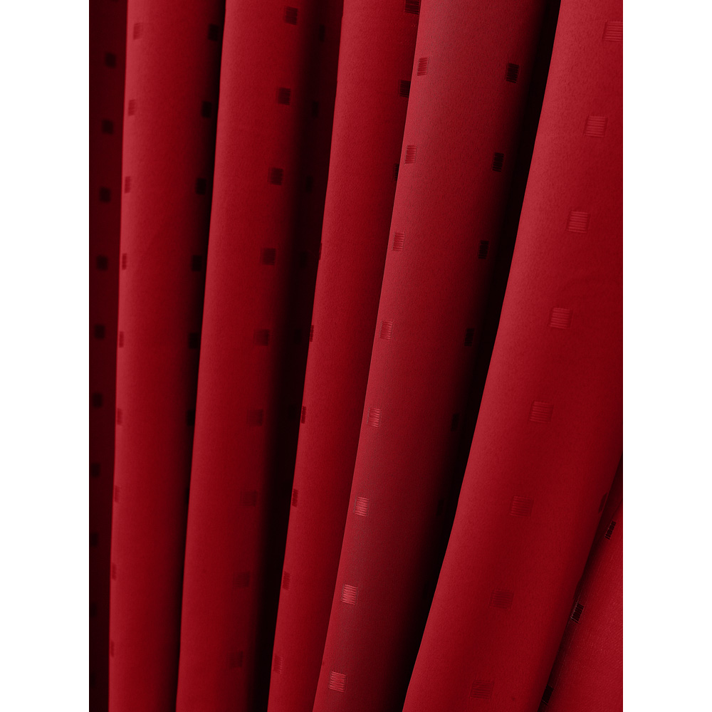 Transform your living space with the Madison Red Ring Top Curtain. This elegant curtain offers timeless beauty and a modern aesthetic, thanks to its heavy-weight poly-dobby fabric and contemporary eyelet heading. The subtle woven square design adds sophistication, reflecting your unique style. Crafted from 100% easy-care polyester, it's machine washable. Providing insulation, this fully lined, medium-weight drape helps regulate temperature, keeping your room warm in winter and cool in summer. Enjoy a comfortable and stylish haven, perfect for relaxation and entertaining. Size: 229 x 274cm.