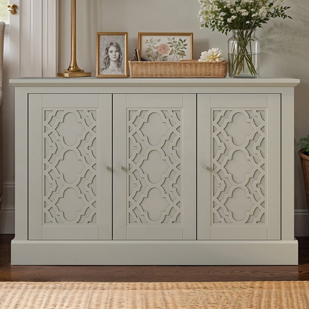 Elevate your home's appeal with the Alessia Sideboard. It showcases an attractive design on the front to add an element of visual appeal to your space. The versatile colour complements various homes, effortlessly accentuating your bedroom, living area, or hallway in no time. With a generous storage space, there's ample room for organising ornaments, textiles, gadgets and other essentials in your space and keeping your home clutter-free at all times.