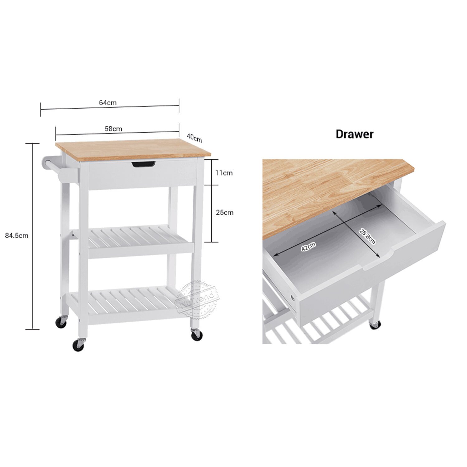 Maximise your kitchen storage with the Alexa Kitchen Storage Cart Trolley. Featuring two shelves and a convenient drawer, it's perfect for keeping cutlery and serving utensils organised. The pine wood effect table top adds a touch of style, while the castors allow for easy movement between rooms, ideal for preparing or serving dishes. A handy side rail provides a spot for hanging tea towels or oven gloves.