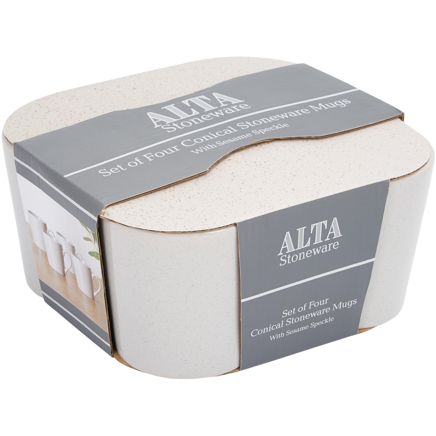 Upgrade your kitchen with this Set of 4 Alta Mugs. Their contemporary shape and delicate sesame speckle design add a modern touch to any setting. Crafted from durable stoneware, these mugs are perfect for everyday use and special occasions. Enjoy the convenience of dishwasher and microwave safety, and complete the look by coordinating them with other pieces from the Alta collection.