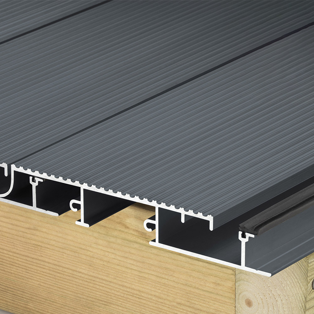 Engineered for lasting performance, Alupave Grey Fireproof Board is the ultimate flat-roofing solution. Its innovative design incorporates patented features for superior results. A double-sealed connexion between boards creates a waterproof barrier, accelerating installation. The extruded aluminium construction, enhanced by a double-peak anti-wear surface, ensures exceptional durability and longevity, even withstanding heavy traffic. Inherently fire-resistant, it',s perfect for high-rise applications. Integrated gutters optimize water management, while hidden fixings deliver a sleek, clean finish. Size: 1 metre.