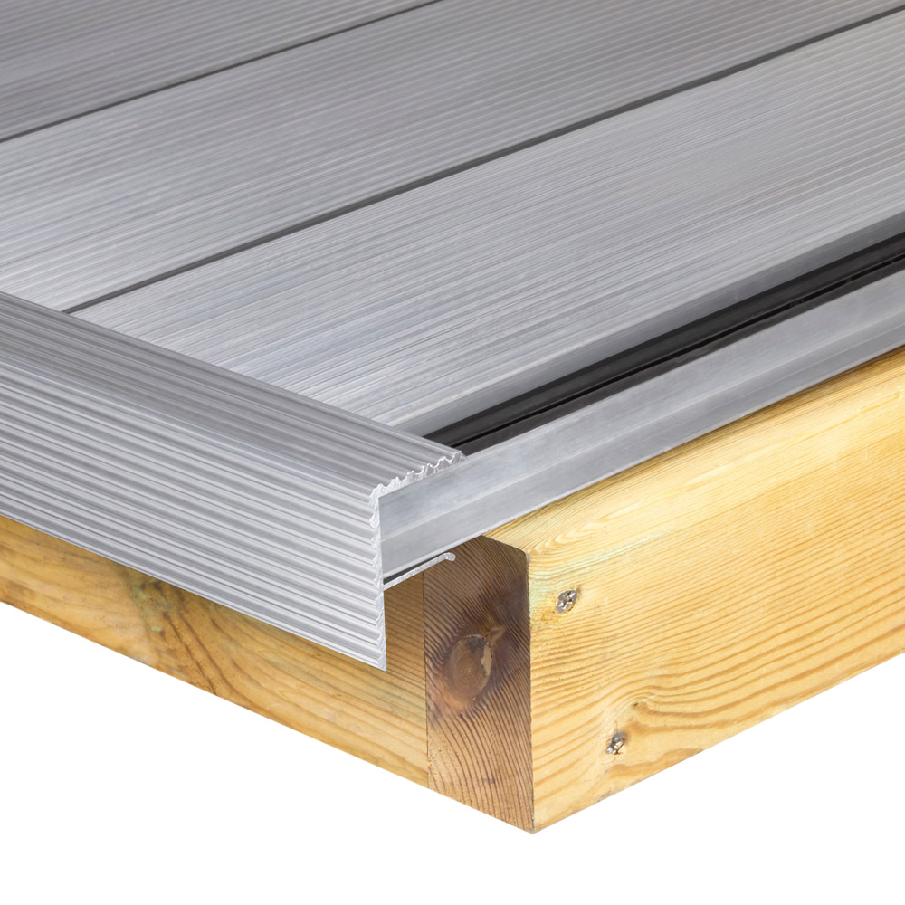 Elevate your outdoor space with the Alupave Mill Decking Board End Stop Bar. This innovative decking and flat-roofing system boasts several patented features, setting it apart from the competition. The double-sealed connexion between each board prevents water from reaching the substructure, significantly reducing installation time. Extruded aluminium construction and a double-peak anti-wear surface ensure exceptional durability, perfect for high-traffic areas and long-lasting performance. Its inherent fire-retardant properties, thanks to the aluminium composition, make it ideal for high-rise buildings. An integrated gutter system provides superior water management, while the concealed fixings eliminate the need for unsightly clips and brackets, resulting in a sleek, modern aesthetic. Available in a 6m length.