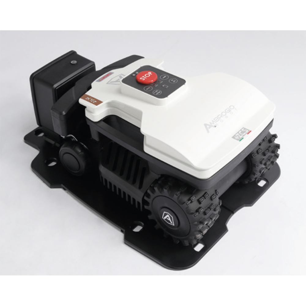 Effortlessly maintain a pristine lawn with the Ambrogio Twenty Deluxe, the perfect robotic solution for smaller gardens up to 700m² (+/-20%). This compact powerhouse navigates with ease, tackling even complex lawn layouts thanks to its four-zone management software. Its brushless motor and powerful 25.9V, 2.5Ah lithium-ion battery ensure efficient operation, while large Flex-Grip rubber tires conquer slopes up to 45%. An 18cm stainless steel blade delivers a precise cut, leaving your lawn looking its best. Bluetooth connectivity via the Ambrogio Remote App provides simple scheduling and control. At just 42cm long and weighing 7.1kg (including batteries), the Twenty Deluxe offers big performance in a small package. Enjoy a beautifully manicured lawn without the effort. Average working time is 2 hours. Maximum allowable slope is 45%, maximum slope is 35%, and slope on the edge or perimeter wire is 20.