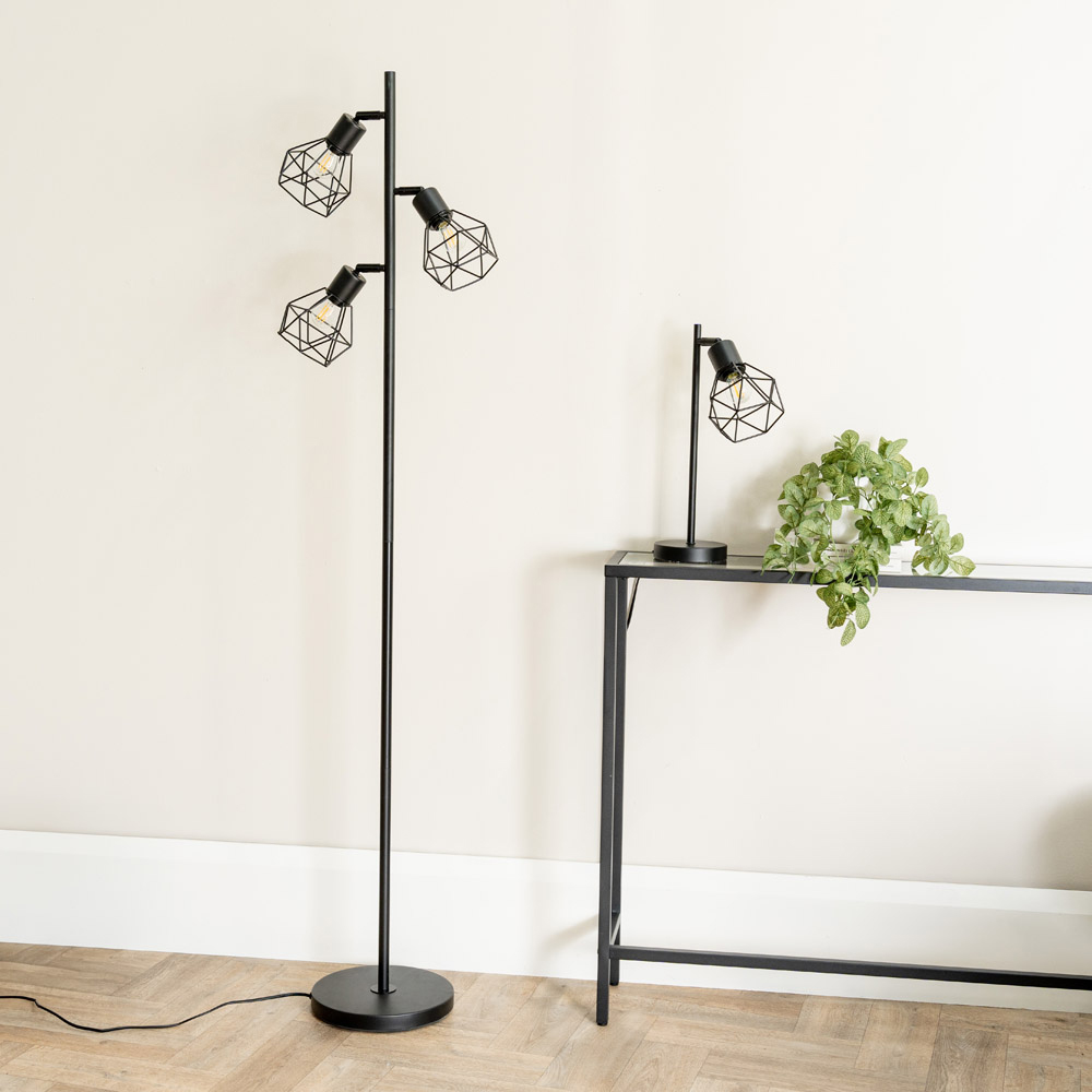 ValueLights Angus Matt Black Metal Geometric Basket Shade LED Table Lamp