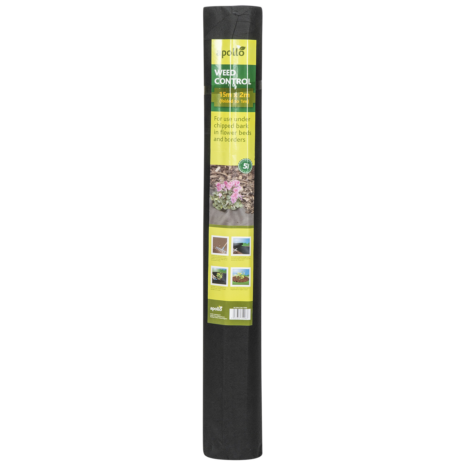 Maintain a pristine, weed-free garden with Apollo Gardening Black Weed Control Fabric. Ideal for use beneath decking, aggregates, and chipped bark, this landscaping essential inhibits weed growth by blocking over 95% of sun penetration while still allowing water and nutrients to reach your plants. This smart solution also retains moisture, reducing the need for frequent watering and ensuring a thriving garden with minimal upkeep. Available in a 15 x 2m roll.