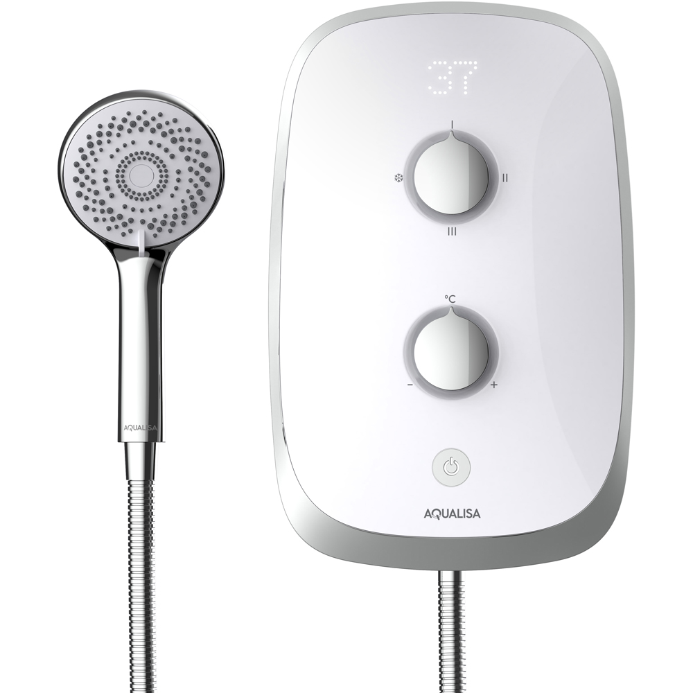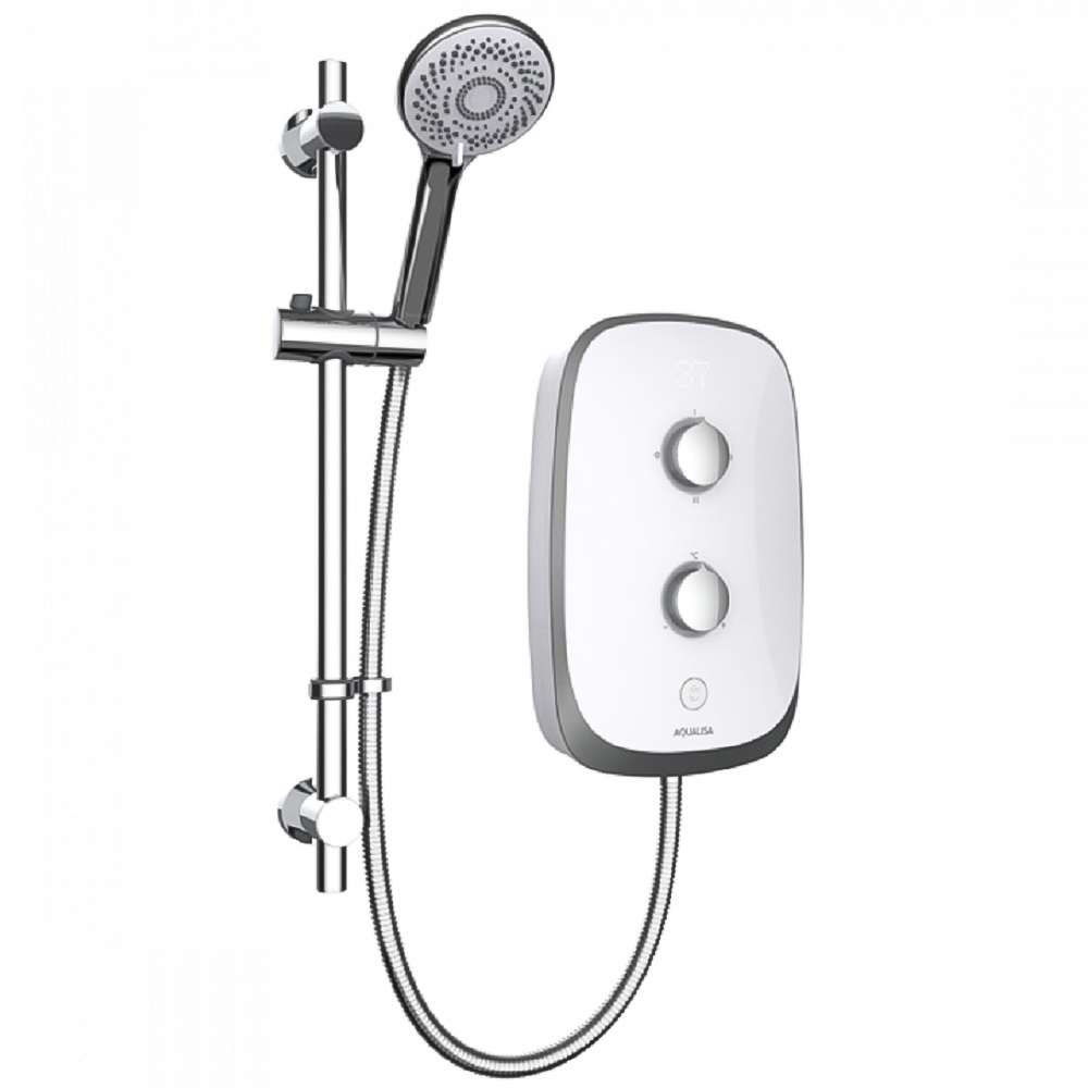 Aqualisa eVOLVE White and Satin Silver Electric Shower 10.5kW
