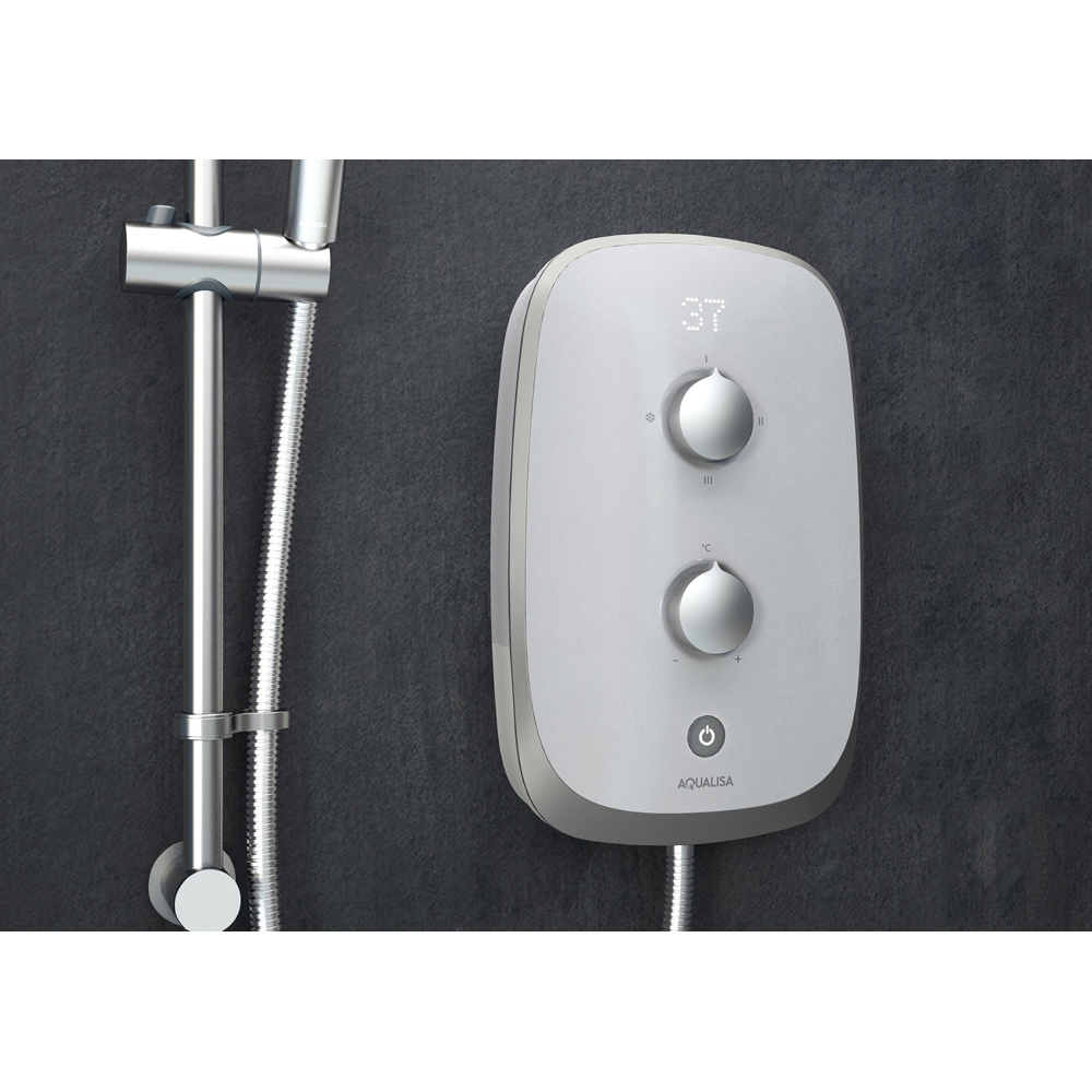 Aqualisa eVOLVE White and Satin Silver Electric Shower 8.5kW