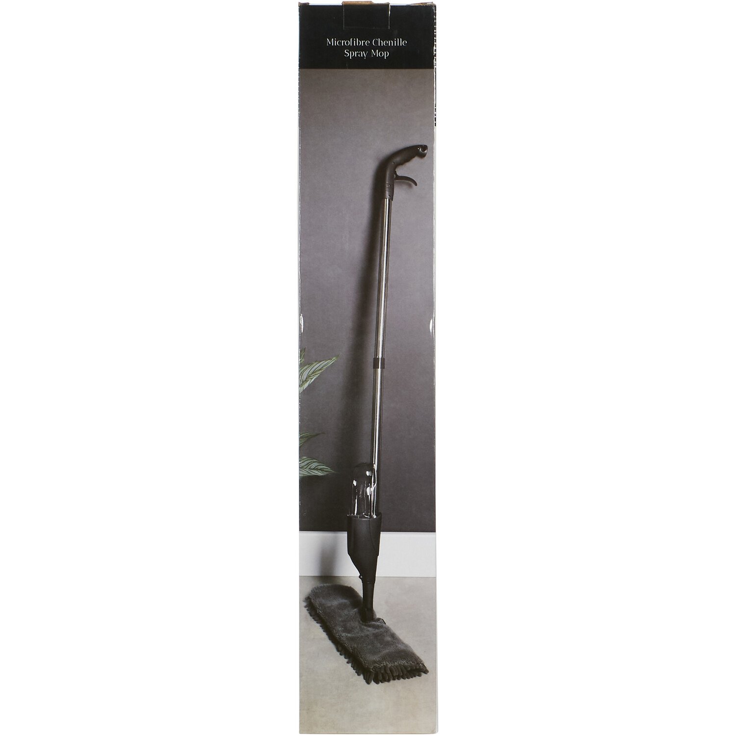 Effortlessly clean your floors with this Microfibre Chenille Spray Mop. Its 360-degree swivel head ensures easy access to every corner and tight space. The highly absorbent 100% microfibre chenille pad effectively captures dust, dirt, and spills. Durable and machine washable for lasting performance and convenient maintenance.