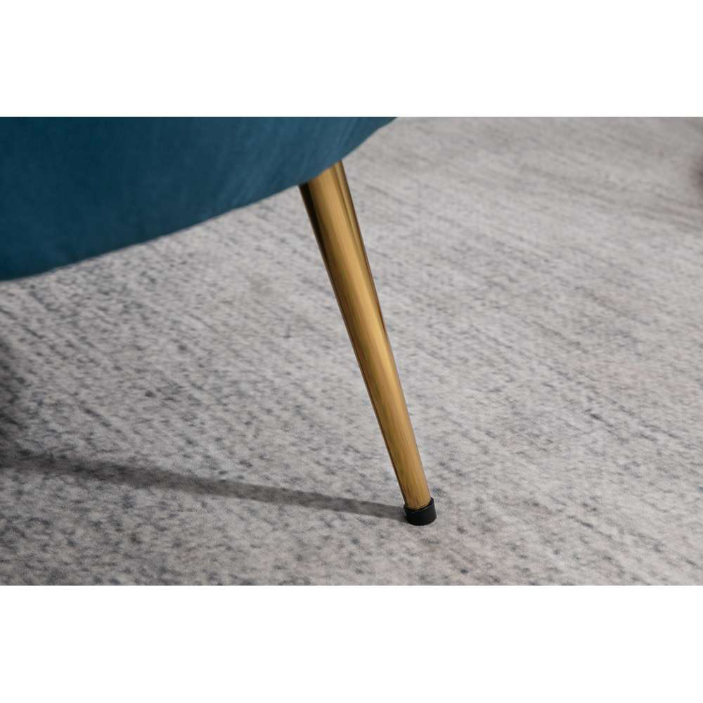 Embrace retro Hollywood glamour with the Ariel Blue Chair. This statement piece effortlessly elevates any room, injecting a touch of timeless elegance. Crafted from luxuriously soft fabric, its lavish upholstery and striking gold legs create an extravagant addition to your living room, bedroom, or even a hotel lobby. A comfortable and stylish choice, this armchair offers exceptional support with a maximum weight capacity of 130kg.
