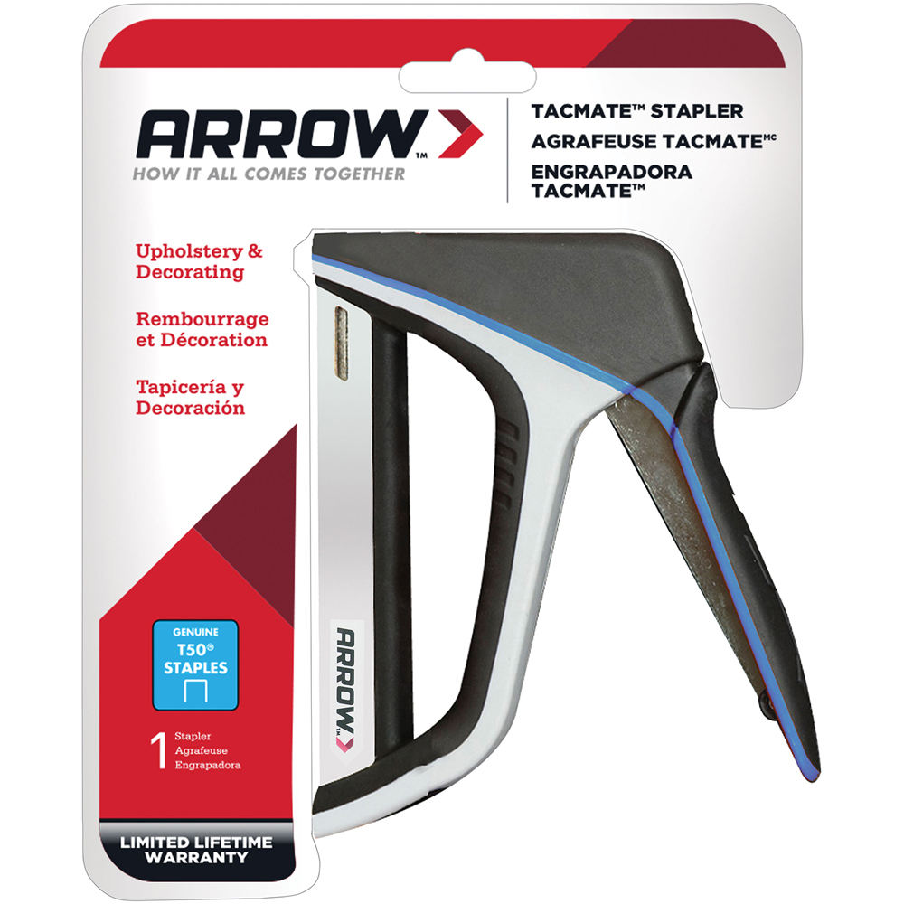 Tackle DIY projects with the Arrow T50X TacMate Staple Gun, designed for comfort and performance. Combining a lightweight, moulded body with soft-grip areas and durable metal internals, this manual staple gun is built to last. Protect your materials with the non-marring rubber tip, preventing unwanted marks and dents. The user-friendly design includes an easy-to-load magazine button and a staple viewing window for quick monitoring. Compatible with T50 staples, the UK and ROI's best-selling staple, this tool fires 6mm, 8mm, 10mm, and 12mm sizes, making it ideal for various upholstery and DIY tasks.