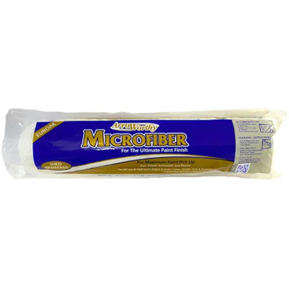 The ArroWorthy 12 x 9/16 inch Microfibre Roller Sleeve lets you paint with ease. This roller sleeve uses a high-capacity blend of European woven fabric, perfect for all paints and stains, especially low-VOC coatings. Its non-shedding design ensures a smooth, even application every time, making it ideal for professionals and DIYers.