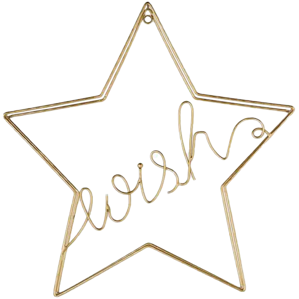 Elevate your home's style with our Art for the Home Wish metal art. This openwork design showcases a beautiful gold star, subtly incorporating the word "Wish." Crafted from metallic gold, this piece adds a touch of glamour and fashionable artistry to any room. Ensure you use wall fixings suitable for your wall type.