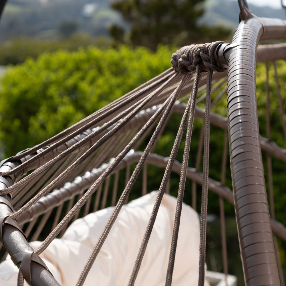 Crafted with a robust, powder-coated metal frame, the Haversham Swing provides unwavering stability and enduring strength. The rattan effect hanging basket introduces a touch of elegance, effortlessly complementing any outdoor setting. Experience unparalleled comfort with the soft, fibre-filled, water-resistant seat and headrest cushions, built to withstand the elements.