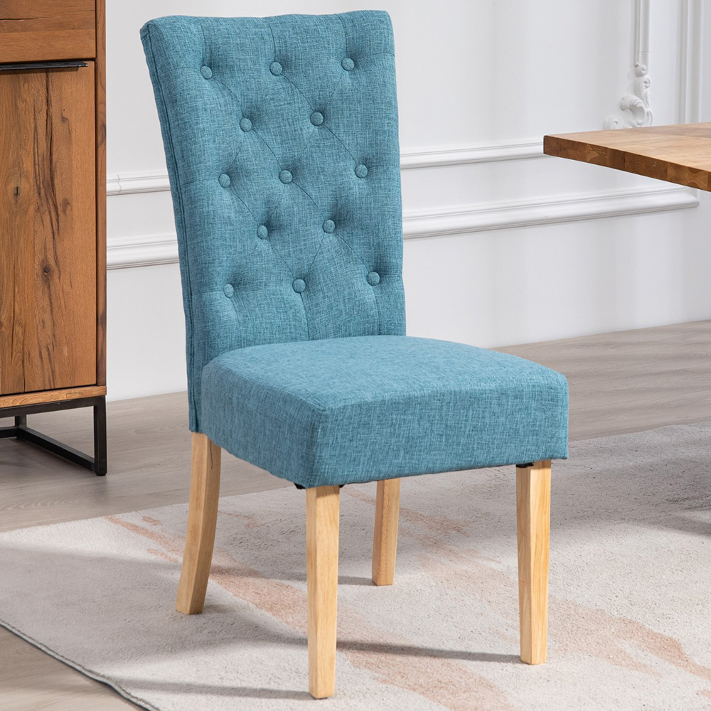 Elevate your dining area with the Artemis Home Carrara Teal Dining Chairs. This pair of stylish chairs effortlessly blends modern design with timeless appeal, creating a sophisticated yet comfortable seating solution. Crafted with precision, these chairs feature textured teal fabric upholstery, adding a touch of luxury to your space. The elevated, studded back provides excellent support, perfect for lingering over meals with loved ones. Supported by a sturdy wooden frame and slender legs, they offer a harmonious balance of durability and understated elegance, echoing Scandinavian simplicity. The chairs’ versatile design complements a range of interior styles, from classic to contemporary, allowing you to seamlessly integrate them into your existing décor. Experience the perfect fusion of aesthetics and functionality – these chairs are sure to impress.
