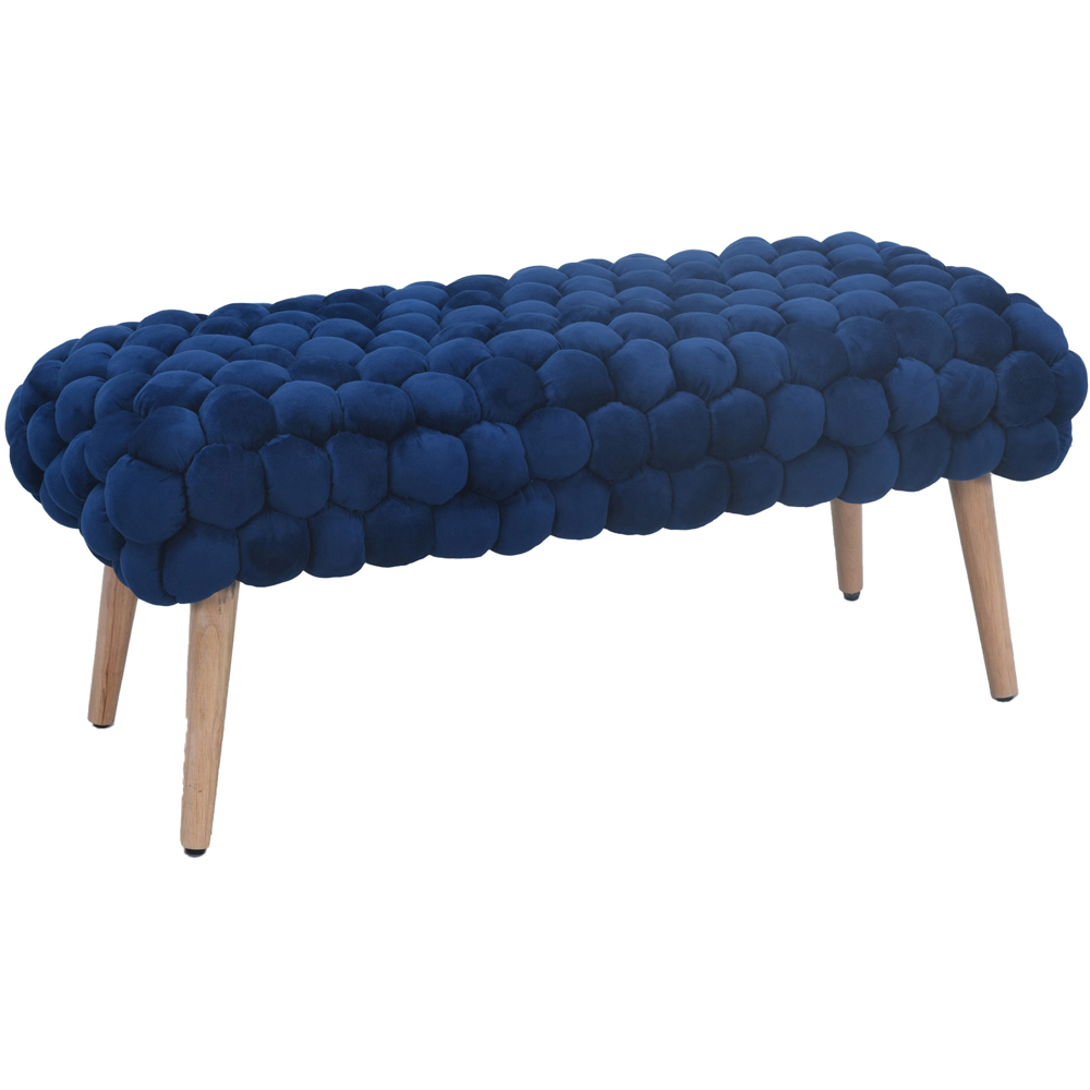 Indulge in luxurious comfort and style with the Cushla dark blue bubbly velvet footstool. Draped in plush velvet upholstery, this piece effortlessly blends modern elegance with a whimsical charm thanks to its hand-finished bobbles. Supported by minimalist Scandi-style wooden legs, it offers a versatile seating solution—perfect for resting your feet, providing extra seating, or even acting as a stylish accent. Its compact size ensures it fits seamlessly into any room, from living room to bedroom or home office, adding a touch of sophisticated comfort wherever it's placed.
