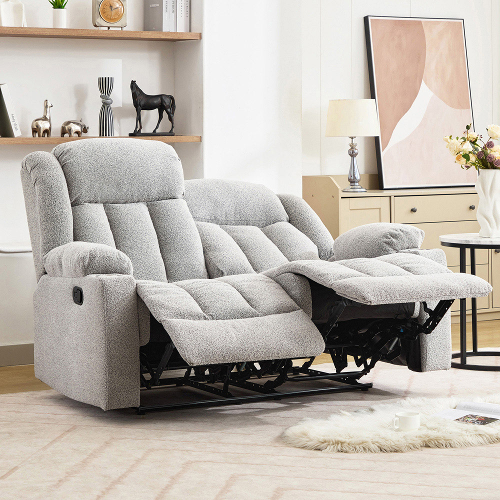 Blending comfort with contemporary design, the Lovell 2 Seat Recliner Sofa with Cup Holders makes a wonderful addition to any modern home. This manual recliner features two independently operated reclining seats, allowing each person to find their perfect relaxing position. Upholstered in a soft, textured boucle fabric, this sofa provides a cosy and modern feel. Built with a solid hardwood frame, the Lovell sofa provides long-lasting strength and support for everyday use. Designed for convenience, this sofa features cup holders in each arm, keeping drinks within easy reach for relaxing evenings and movie nights. With its premium materials and thoughtful features, this recliner sofa provides practicality and luxury.