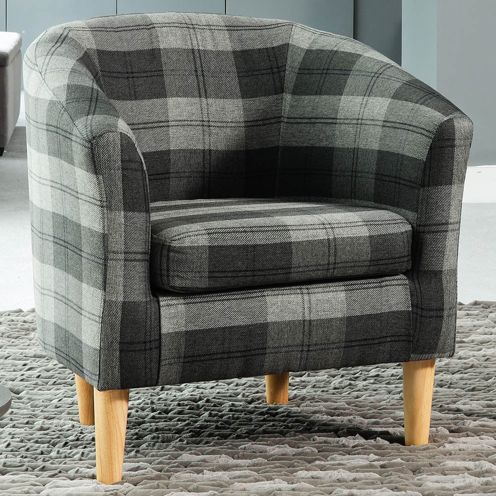Introduce a touch of timeless elegance to your home with the Artemis Home Medford Tub Chair in Grey. Perfect as an occasional seating solution, this chair boasts a classic design with a focus on comfort. Enjoy the support of its rounded arms and the firm, removable seat cushion. Built with a solid hardwood frame and foam padding, this chair ensures durability and an extra layer of cosiness. The chequered fabric upholstery adds a sophisticated visual texture. To further enhance its versatility, the Medford Tub Chair includes both light and dark wooden legs, allowing you to effortlessly tailor its appearance to complement your existing décor.