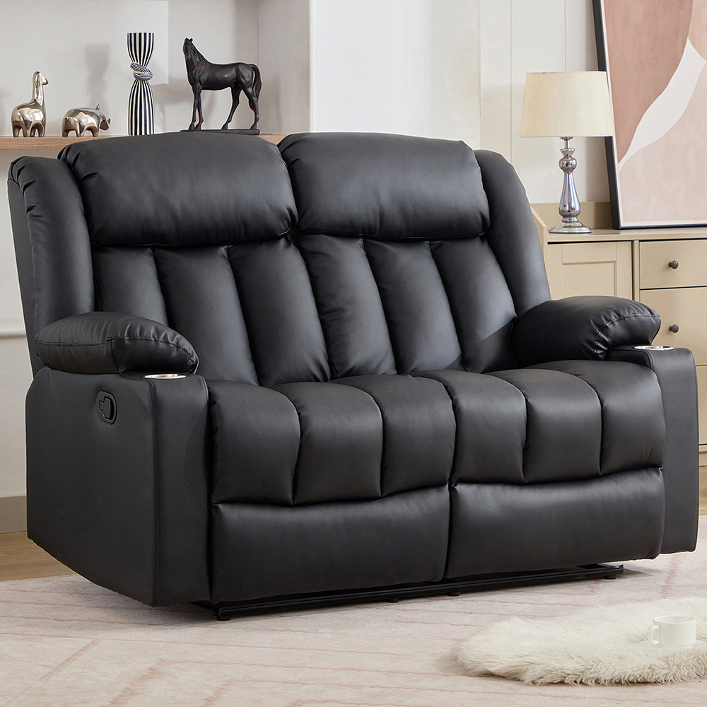 Introducing the Sheridan 2 Seat Recliner Sofa, where comfort meets practicality in one stylish package. This manual recliner features independently operated seats, inviting you to unwind in your own personal haven. The durable bonded leather upholstery, complemented by faux leather in low-stress zones, ensures both luxury and lasting wear. Built upon a robust hardwood frame, the Sheridan sofa offers exceptional strength and unwavering support for everyday use. Thoughtfully designed with built-in cup holders in each arm, your favourite drinks are always within easy reach, perfect for movie nights and relaxing evenings. The Sheridan recliner sofa is a superb blend of quality materials and smart design, providing both style and enduring comfort, making it a perfect addition to any living space.
