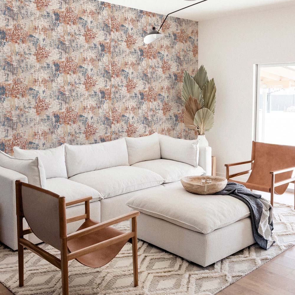 Add industrial-chic style to your space with this Abstract Texture Copper and Navy wallpaper. Its distressed design, accented with metallic highlights, offers a premium look perfect for a statement wall or full room coverage. This paste-the-paper wallpaper boasts an offset pattern match of 26.5cm and a 53cm repeat, with each roll measuring 10.05m in length and 53cm in width.