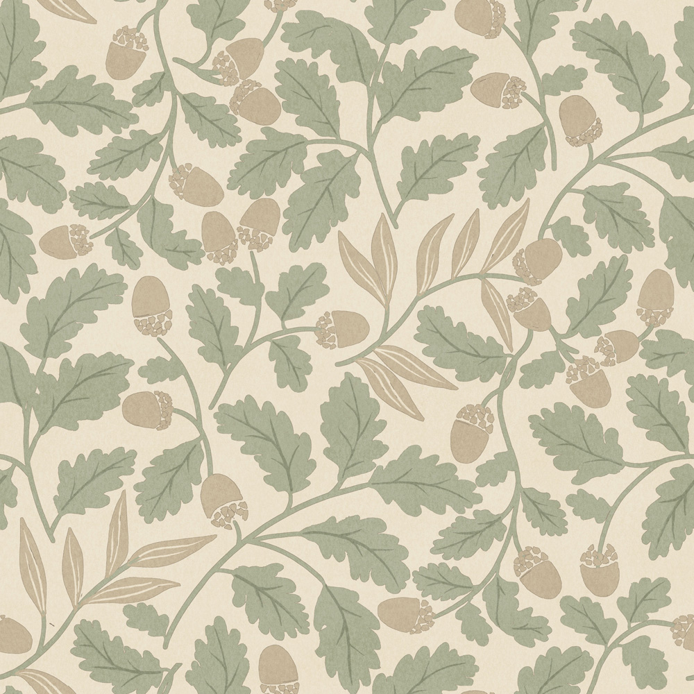 Introduce a touch of classic elegance to your home with "Acorn Trail Sage" wallpaper. The delightful pattern showcases oak leaves and acorns in a restful sage green, bringing a timeless and sophisticated feel to any room. Designed for traditional application, this wallpaper requires pasting the paper and is both spongeable and wet removable for easy maintenance.