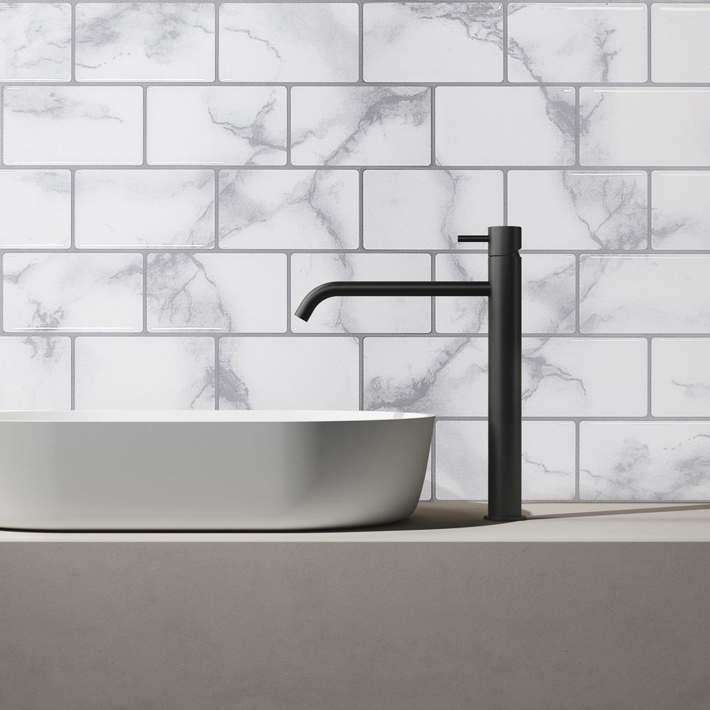 Transform your home with the Arthouse ArtiFIX Grey Marble Effect Brick Design Sticky Back Wall Tiles. These stylish tiles, in a gorgeous grey marble-effect brick design, effortlessly add charm to your space. Simply peel and stick these versatile 30cm x 30cm tiles to most surfaces – walls, furniture, and more – for a quick and easy update. Achieve a sleek, high-shine finish. A five-pack is perfect for smaller projects.