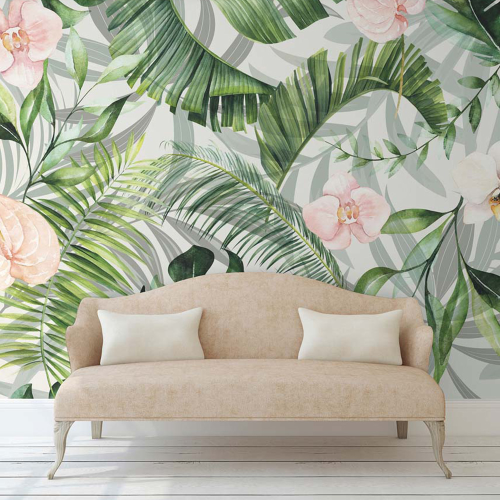 Escape to the lush rainforest with the Arthouse Bright Tropic Design Green Mural. This vibrant wall mural showcases layered rainforest leaves, creating stunning depth and accented with beautiful pink flowers. The bright, refreshing colour palette of greens and pinks instantly brightens any room. High-resolution images, created in-house using drawings and photography, guarantee a crisp, pixel-free finish. Paste-the-wall application makes hanging effortless. Arriving on one continuous roll, this expansive mural measures an impressive 3m wide x 2.75m high, making a bold statement in any space.