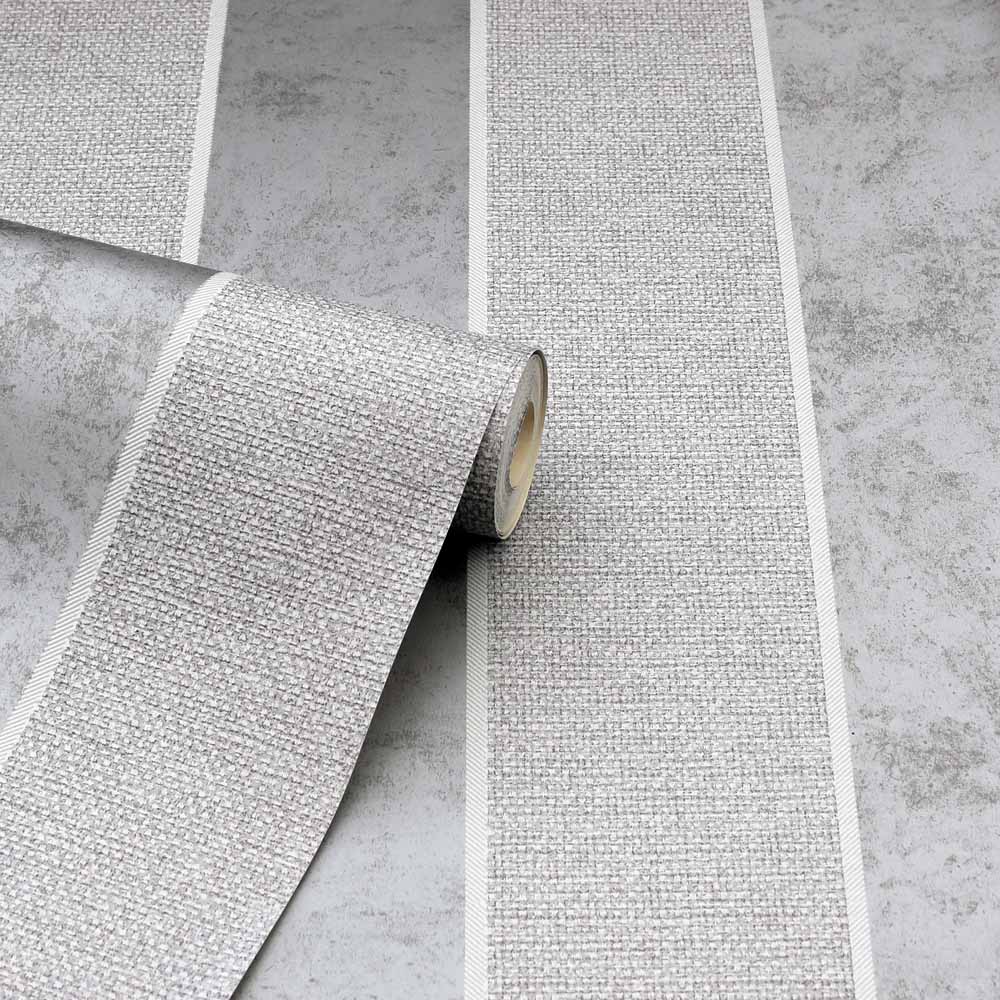 This stunning Arthouse wallpaper, with its large-scale stripes in a mix of pale grey tones and contrasting textures, brings relaxed elegance to any room. Its versatile design complements various interior styles, making it ideal for a feature wall, chimney breast, alcoves, or all four walls. The fabric-look blown vinyl is easy to apply (paste the paper), features a free match design with a 53cm repeat, and each 10.05m long roll is 53cm wide. Perfect for living rooms, dining rooms, bedrooms, or studies.